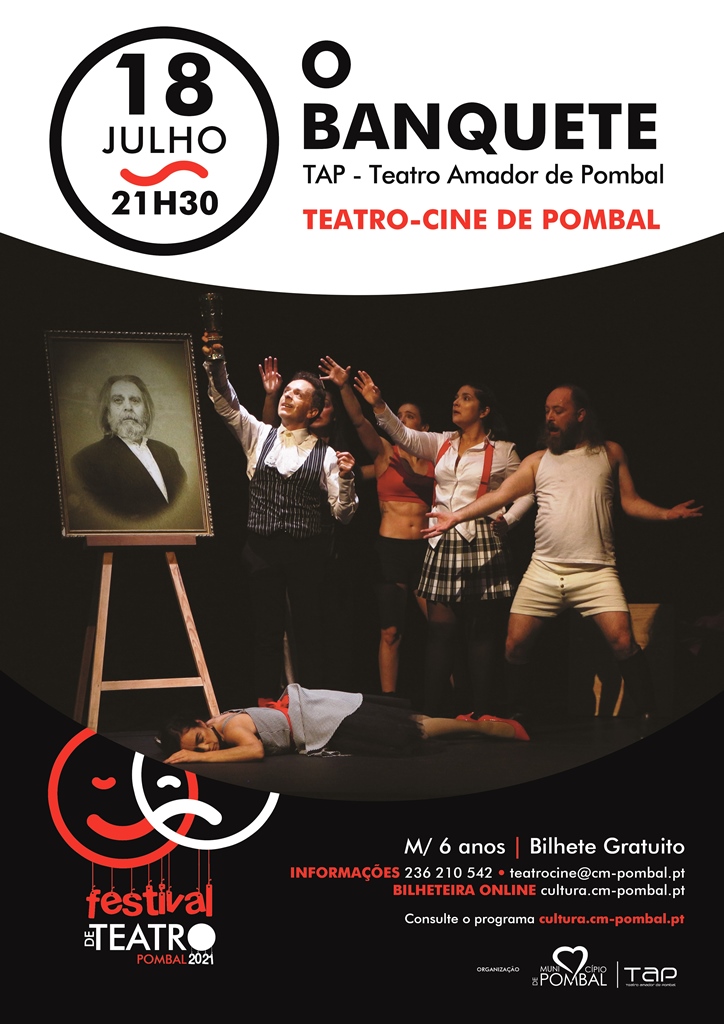 “O Banquete” é o título da nova produção do TAP (Teatro Amador de Pombal) com a direcção artística e encenação da Companhia RADAR 360°, a peça encontra a sua linguagem estética no Teatro do Absurdo com personagens criados a partir de improvisações de Teatro Físico.